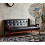 ソファー 3人掛け 3P おしゃれ 北欧 ビンテージ ベンチ ソファ 袖付き New Retro 天然木脚 幅127 くるみボタン ブラウン ブルー グレー グリーン ベージュ