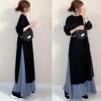 セットアップ 2点セット ワンピース ロングスカート Tシャツワンピ シフォンスカート レディース 長袖 きれいめ カジュアル おしゃれ フェミ
