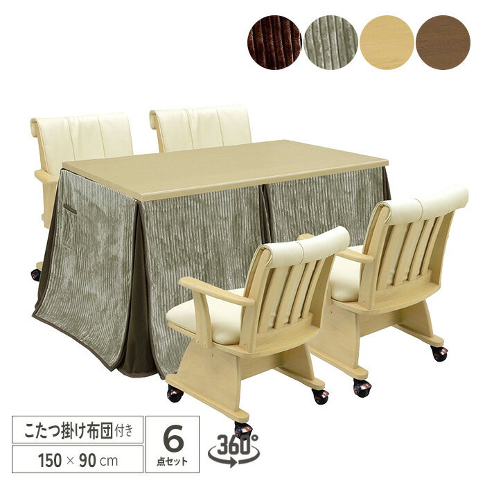 こたつ ハイタイプ 4人掛け 幅150 ダイニングこたつセット テーブル チェア こたつ布団 6点セット 長方形 ナチュラル シンプル おしゃれ チェア キャスター付き