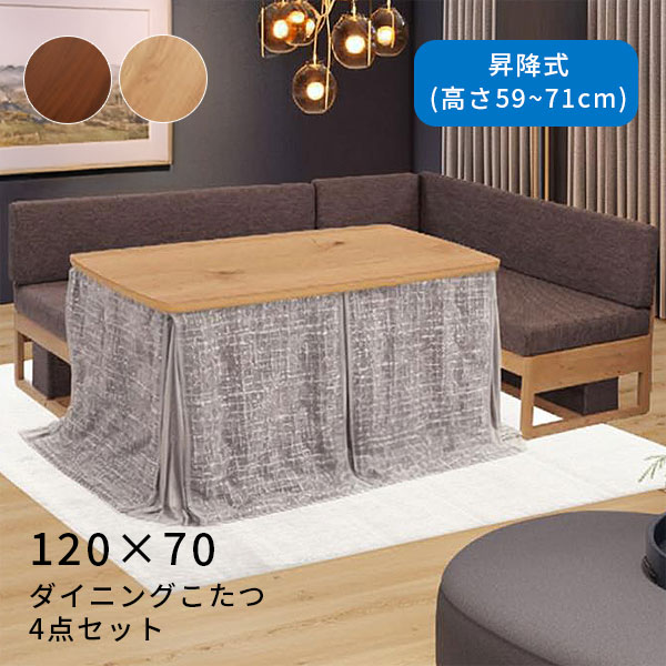 ダイニングこたつ【リフト120HI 4点セット】家具調こたつ 120×70 昇降式 高さ調整 ソファ こたつ布団 こたつテーブル おしゃれ シンプル 布団レスヒーター
