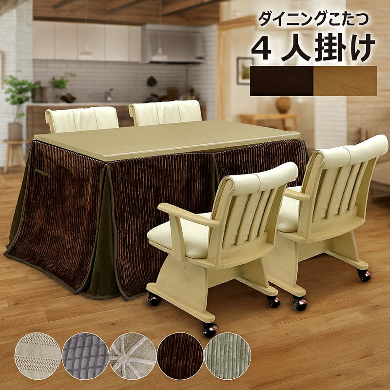 【12/1(月)ワンダフルデー 全品ポイント10倍】ダイニングこたつ 6点セット 4人掛け 幅150cm ハイタイプこたつ コタツ布団 掛け布団付き アーム付き 回転チェア ナチュラル ブラウン 選べる2色 ダイニングテーブルセット 送料無料