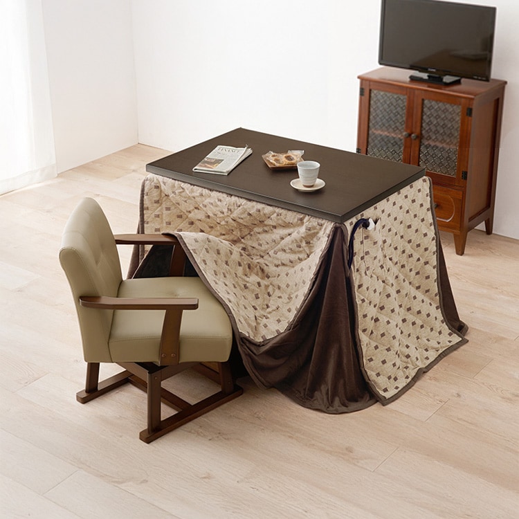 一人用こたつ ハイタイプこたつ 3点セット 90×60 リクライニングチェア ハイバック こたつテーブル ダイニングこたつ 机 1人用 ナチュラル ブラウン
