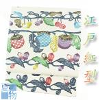紅型染 名古屋帯 夏物 絽 白地 カジュアル 柿 さくらんぼ どんぐり 塩瀬 五泉 江戸紅型 正絹 九寸 反物 新品 未仕立て 着物 No.88-0607