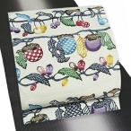 江戸紅型 名古屋帯 紅型染 最駒塩瀬 五泉 白地 さくらんぼ チェリー 柿 どんぐり 正絹 友禅染 九寸 仕立て上がり お洒落着 No.6-0601