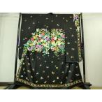 平和屋本店■極上 振袖 希少柄 果物 フルーツ 葡萄 リンゴ 苺 さくらんぼ 黒地 金彩 逸品 未使用 DZAA6685kh5