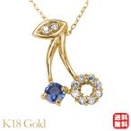 ダイヤモンド サファイア ネックレス ダイヤ サファイヤ ペンダント イエローゴールド k18 18k 18金 さくらんぼ サクランボ レディース 送料無料 pu