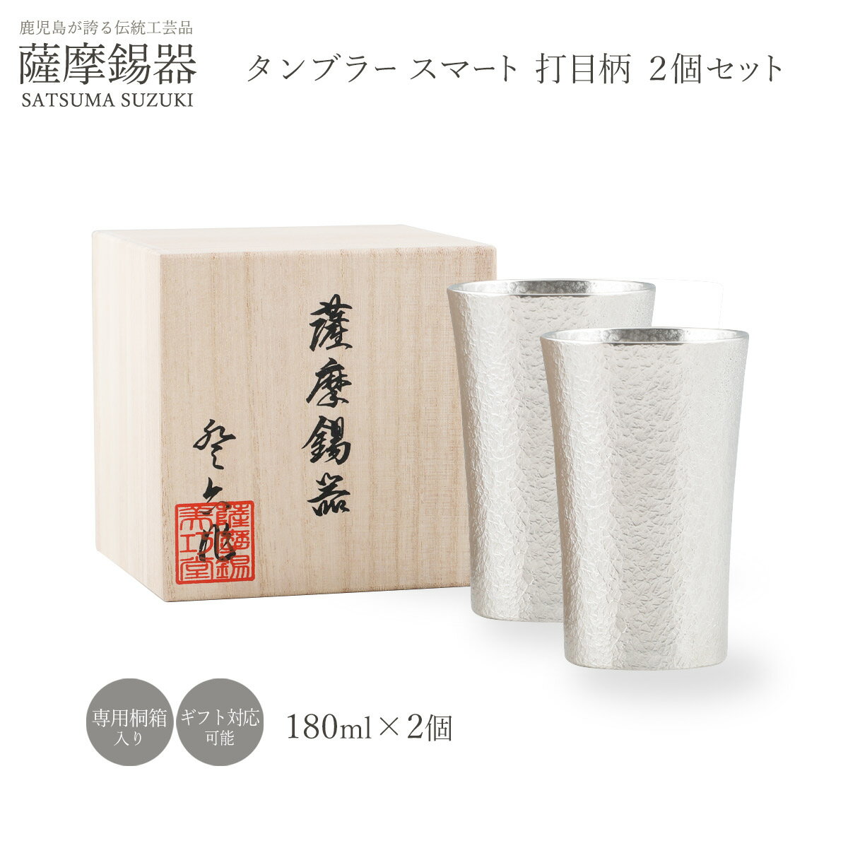 【10%OFF 楽天スーパーSALE限定】送料無料 [薩摩錫器工芸館] 薩摩錫器 タンブラースマート 打目柄 2個セット /酒器 グラス ペアタンブラー 鹿児島県 ギフト プレゼント お祝いの品 退職祝い 還暦祝い
