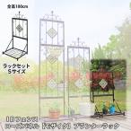 IBフェンス ローズパネル【モザイク】プランターラックセットL フラワースタンド 屋外 アイアン フェンス付 プランター トレリス ステンドグラス