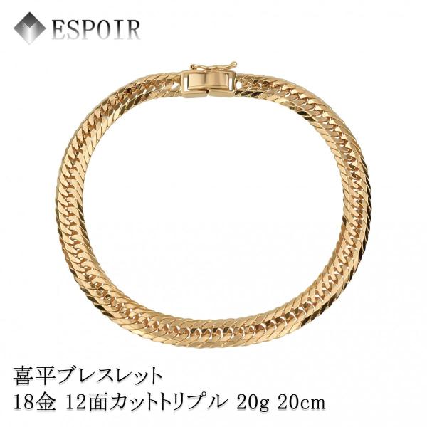新品 18金 喜平 ブレスレット K18 12面カットトリプル 20g 20cm 造幣局検定マーク 刻印入り メンズ レディース キヘイ チェーン