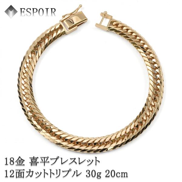 新品 18金 喜平 ブレスレット K18 12面カットトリプル 30g 20cm 造幣局検定マーク 刻印入り メンズ レディース キヘイ チェーン