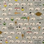 \期間限定10%OFF/ 生地 綿麻キャンバスプリント ねこしゃもじ(KTS7048) E.グレー 09Cu45_