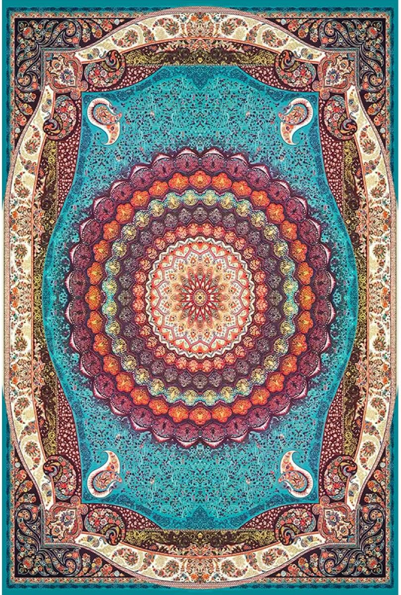 【30%OFFヴィレ限定セール】ラグ ペルシャ風 ペルシャ柄 ラグマット 柄 洗える 長方形 正方形 絨毯 カーペット ペルシャ かわいい おしゃれ 薄手 滑り止め付き 床暖房対応 北欧 高級感 プリント 冬用 冬ラグ <メダリオンラグ / 1畳 2畳 3畳 >