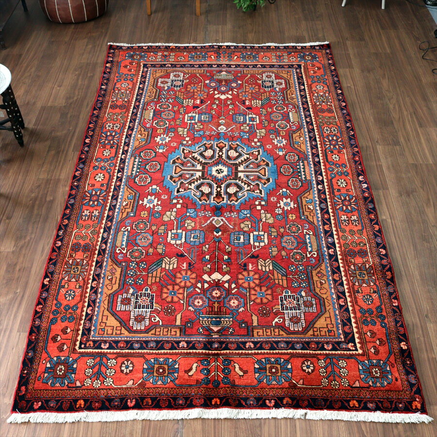 【15%OFFクーポン対象】ペルシャ絨毯 ヴィンテージラグ ザンジャン 200×126cm ヘラート文様 赤い六角メダリオン