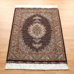 ペルシャ絨毯 タブリーズ産マヒ 玄関マット 95x62cm ブラック / ベージュ メダリオン マヒ