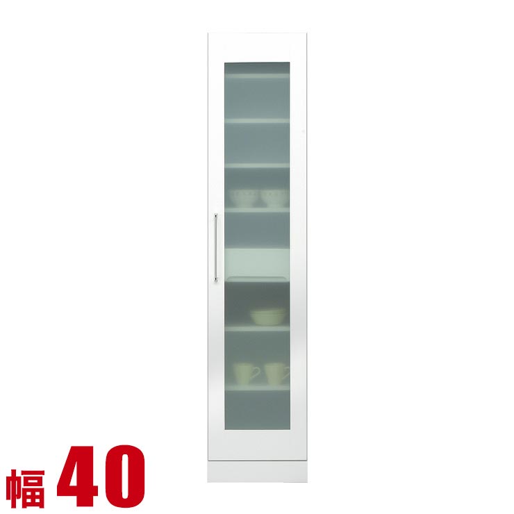 隙間収納 40 すき間収納 フィット 幅40cm 開き戸ガラス扉タイプ 鏡面ホワイト リビング収納 キッチン収納 キッチンボード キッチンキャビネット 完成品 日本製