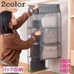 バッグ収納 吊り下げ カバン収納 すき間収納 ハンガー式 型崩れ防止 棚ラック 中身可視 2段 3段 4段 かばん置き メッシュ 無地 不織布 クロー