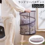 ランドリーバスケット 折りたたみ 丸型 ドローコード 洗濯物 カゴ メッシュ 通気性 スリム コンパクト 省スペース 収納 シンプル 雑貨