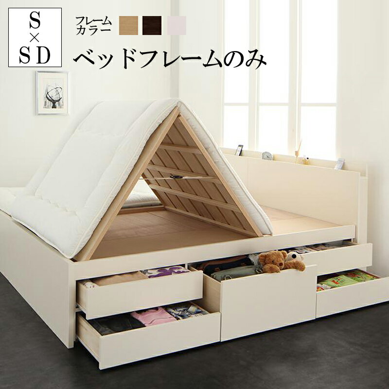 すのこベッド ベッドフレームのみ (ワイドK220 シングルベッド+セミダブルベッド) ベッド 連結ベッド 布団が干せる 国産大容量収納ファミリーチェストベッド COLRIS コルリス 棚付き 宮付き コンセント付き 木製ベッド ファミリーベッド 家族 ベット (送料無料) 500021622