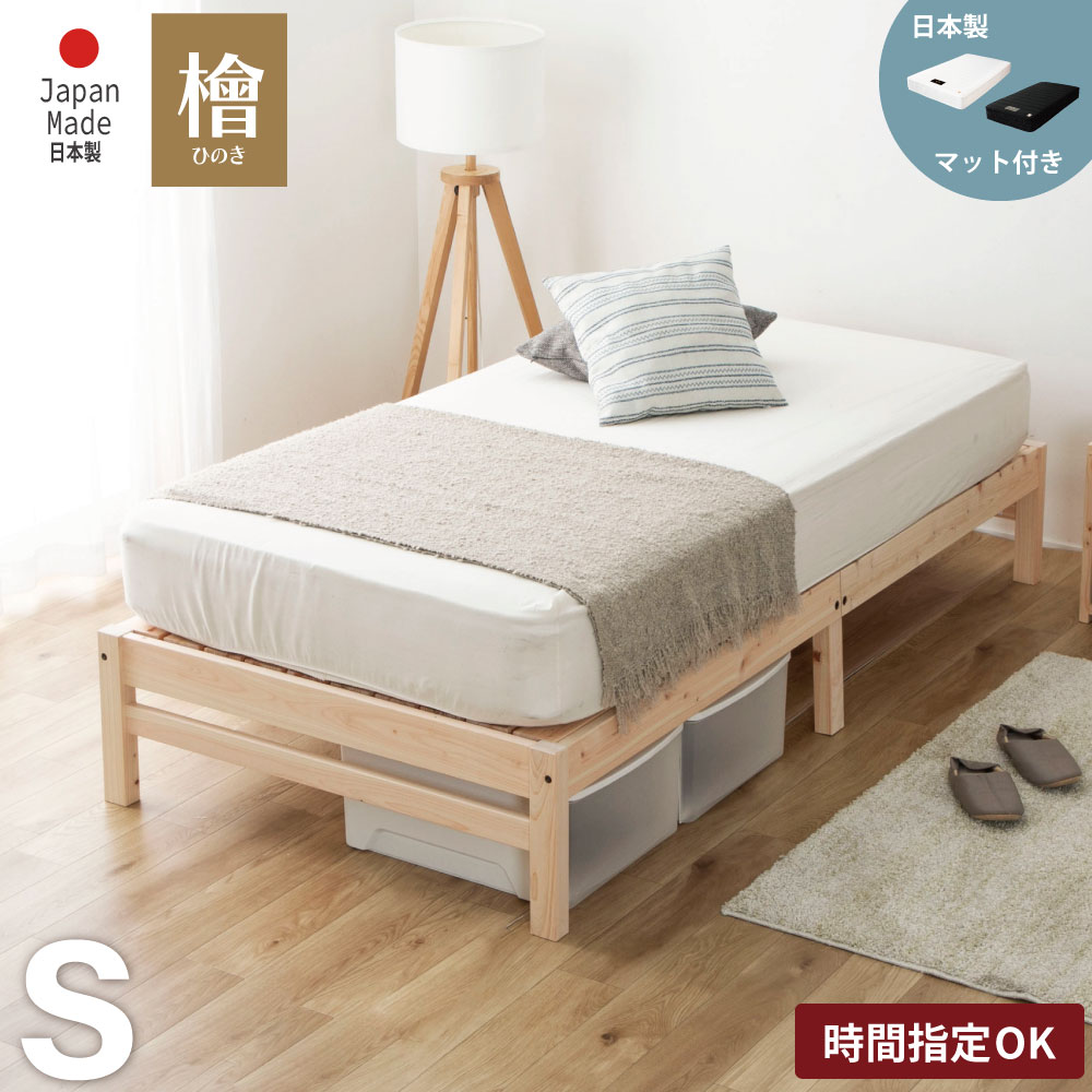 毎月月初|12月1日限定5%OFFクーポン|日本製ポケットマット(ハイグレード2)付き すのこベッド シングル ベッド ひのき 宮無し 棚無し ヘッドレス ひのきベッド 日本製 国産 頑丈 シンプル 天然木フレーム シングルベッド 桧 檜 桧ベッド 桧スノコベッド