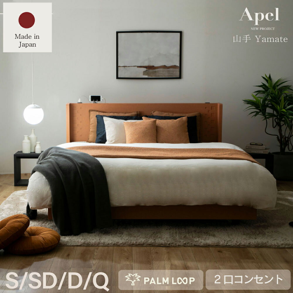 ブラックフライデーSALE|5%OFFクーポン|日本製 すのこベッド 山手(YAMATE) 2口コンセント付き 棚付き テラコッタ おしゃれベッド トレンドデザイン シングル セミダブル ダブル クイーン 連結ベッド 日本製マットレスセット 【1年保証付き】海外インテリア Apel