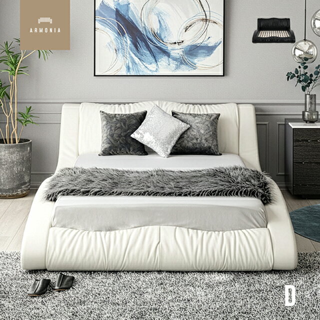 【期間限定特価*ホワイト30%OFF/ブラック10%OFF】 ローベッド ベッド ベッドフレーム ダブル ベット ロータイプ すのこ レザー 革 合皮 合成皮革 フロア デザイナーズ bed 家具 北欧 モダン 高級 ラグジュアリー D ペット可 猫 犬 爪 強い CLEARANCE_D-001 CLEARANCE_COLOR