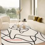 ラグマット 洗える おしゃれ 手書き風 ライン デザイン ラグ すべり止め加工 カーペット ステッチライン 大きい 床暖房対応 現代タイプ 縞柄 マット マルチ