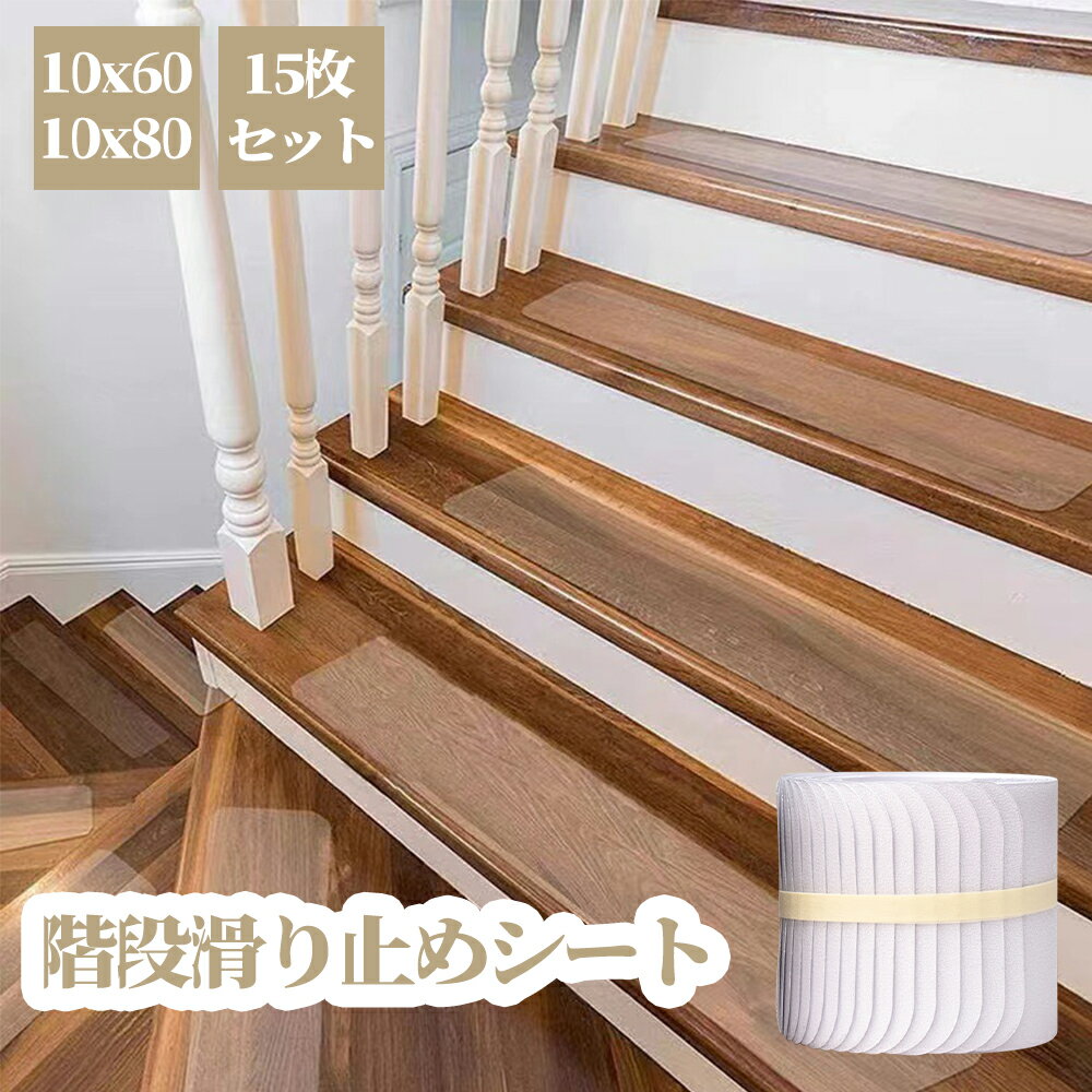 【全店舗7%OFFクーポン】階段滑り止めマット 15枚入 自由カット 滑り止めテープ 透明 スリップ防止 防水 拭ける 貼り直し 高齢者 お年寄り 子供 賃貸 ペット ズレない キズ防止