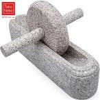 青石 花崗岩製 すり鉢 乳鉢 セット ローラー付き - 漢方薬調合・ハーブ粉砕・調味料すりつぶしに最適な多用途キッチン用品・薬研