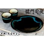 ふるさと納税 a690 姶良市の伝統工芸品「龍門司焼」黒釉青流の大皿(9寸皿・直径約27cm・1枚)とそばちょこペア(直径約8cm・2個)セット【龍門司.. 鹿児島県姶良市