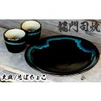 ふるさと納税 陶磁器・漆器・ガラス 鹿児島県 姶良市 a690 姶良市の伝統工芸品「龍門司焼」黒釉青流の大皿(9寸皿・直径約27cm・1枚)とそばちょこペア(直径約8c…