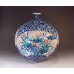 染付青海波菖蒲鷺絵花瓶|有田焼 陶芸作家 藤井錦彩作