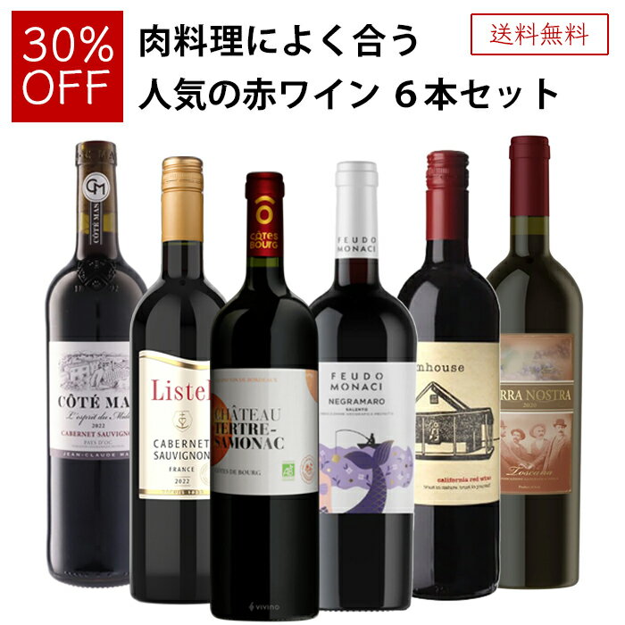 【送料無料/30%OFF】迷ったらこれ!肉料理によく合う人気の赤ワイン 6本セット 赤 750ml×6