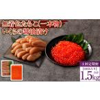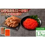 ふるさと納税 魚貝類 たらこ 北海道 小樽市 3回定期便 無着色明太子(一本物)・いくらの醤油漬け 1回あたり合計1.5kg セット めんたいこ 明太子 無着色 いく…