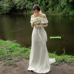 ウェディングドレス 二次会 結婚式 ブライダル マーメイド オフショルダー 前撮り 挙式 花嫁 記念撮影 ウエディングドレス ガーデンウエディング サテン