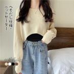 セーター レディース ニットセーター へそだし 秋冬 ショート丈 クルーネック トップス プルオーバー 長袖 リブ お洒落 新作