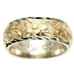 ハワイアンジュエリー リング 指輪 オーダーメイド 幅8mm 14K ゴールド 2トーンリング バレルリング ハワイ製 手彫りリング メンズ レディース