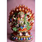 ネパールパタン製 仏像 マハーカーラ 大黒天 六臂 黒マハーカーラ 銅製極彩色【送料無料】rqs022