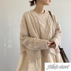 ニットセーター レディース レイヤード風 ケーブルニット シャツ切り替え セーター トップス