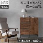 キャビネット サイドボード 引出し 幅80cm 日本製 セミ完成品 収納 脚付き おしゃれ リビングキャビネット ナチュラル ウォールナット 扉付き キャビネットFV