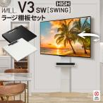 WALLインテリアテレビスタンドV3 SW ハイタイプ+棚板ラージサイズ 2点セット 32~80v対応 壁寄せテレビ台 TVスタンド 左右首振り 背面収納 白 黒 ブラウン