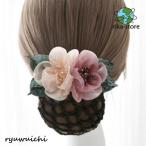 【ネット付き バレッタ】上品 花柄 お団子ネット バレッタ シンプル お団子ヘア おだんご ネット ヘアアクセリボン