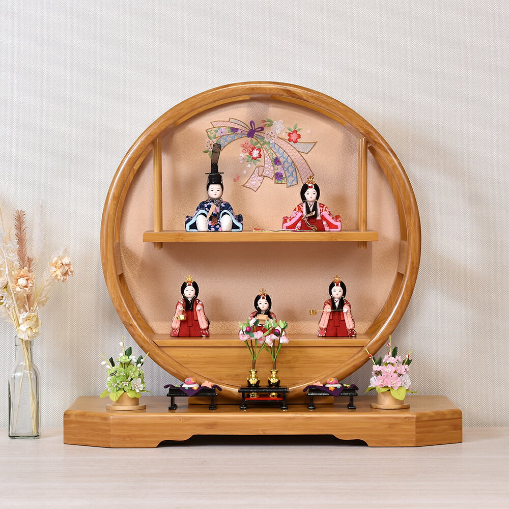 雛人形 コンパクト お祝い 木目込み 5人飾り 竹輪 円形 かわいい コンパクト ひな人形 ミニ おしゃれ 初節句 お祝い モダン 2025