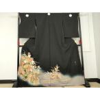 平和屋着物●京友禅の第一人者 松井青々 黒留袖 駒刺繍 流水枝花文 上代180万 金彩 浜ちりめん 仮絵羽 正絹 逸品 未使用 AABE2765cs