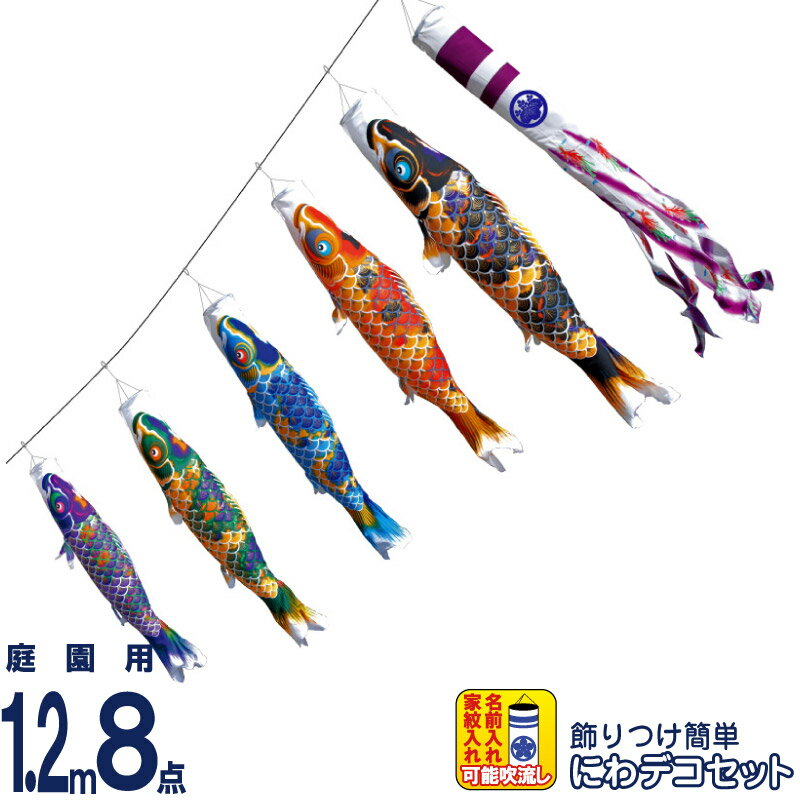 こいのぼり 徳永鯉 鯉のぼり 庭園用 1.2m8点 にわデコセット ちりめん京錦 献上手染友禅之鯉 撥水加工 ポリエステルちりめん 家紋・名入れ可能 【2026年度新作】 410-165