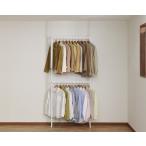 ハンガーラック つっぱり 白 洋服掛け おしゃれ 身支度ラック クロムメッキ 省スペース 上下2段 ダブル 突っ張り 幅97.5cm