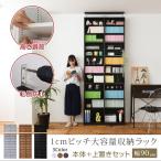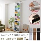 1cmピッチ 薄型 大容量 文庫本ラック 幅60 上置きセット 書棚 壁面収納 つっぱり 木製 本収納 漫画 CD DVD 代引不可 同梱不可
