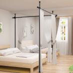 突っ張り パーテーション 部屋 仕切り つっぱり カーテンポール カーテンリング付 耐荷重最大70kg 縦107.5-267cm 横106-263cm (2ポール+カーテン2枚付き)