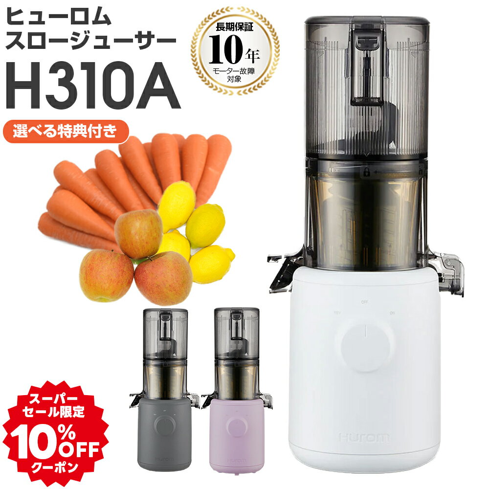 【スーパーセール限定10%OFF&選べる特典付き!】 ジューサー ヒューロム スロージューサー H310A h310a HUROM ホワイト チャコール ラベンダー 低速ジューサー 簡単 洗いやすい 小型 コンパクト お手入れ簡単 人参ジュース ギフト 縦型 軽量 ジューサーミキサー 10年保証