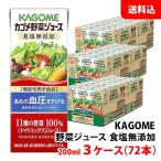 送料無料 カゴメ 野菜ジュース 200ml 食塩無添加 3ケース(72本) 紙パック 野菜ジュース 11種類の野菜100% 機能性表示食品