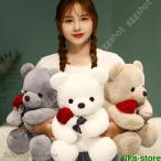 くま ぬいぐるみ テディベア 熊 薔薇 ローズ 一輪の花 ベアー クマさん ギフト 母の日 卒業 入学 出産 お祝い 還暦祝い クリスマス プレゼント に最適 ギフト